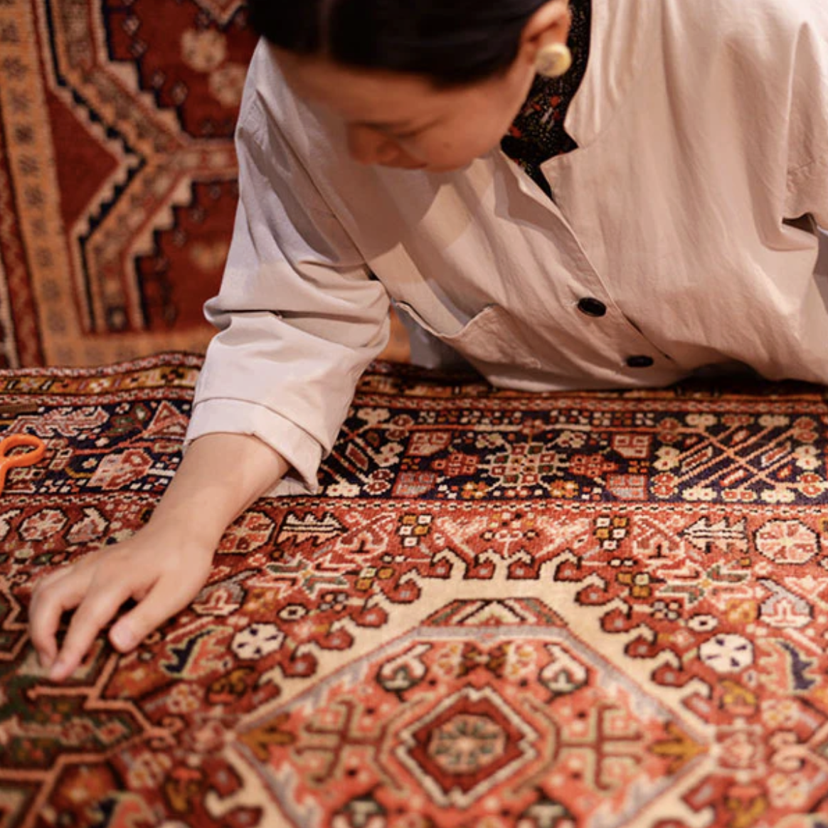Layout用嚴謹態度審視每一件地毯,確認每個編織細節與氣味,讓古老工藝走進現代生活。