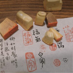 在我們經常開班的書法體驗課的最後,也一定會讓大家利用各式印章來為自己的作品完成最後的畫面佈局。