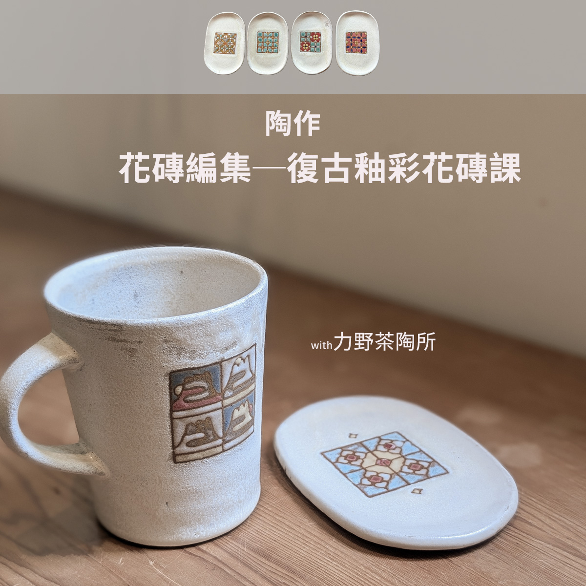 將復古的台灣馬賽克花磚帶入生活的日用中,同時也來認識陶藝中的釉彩創作。
