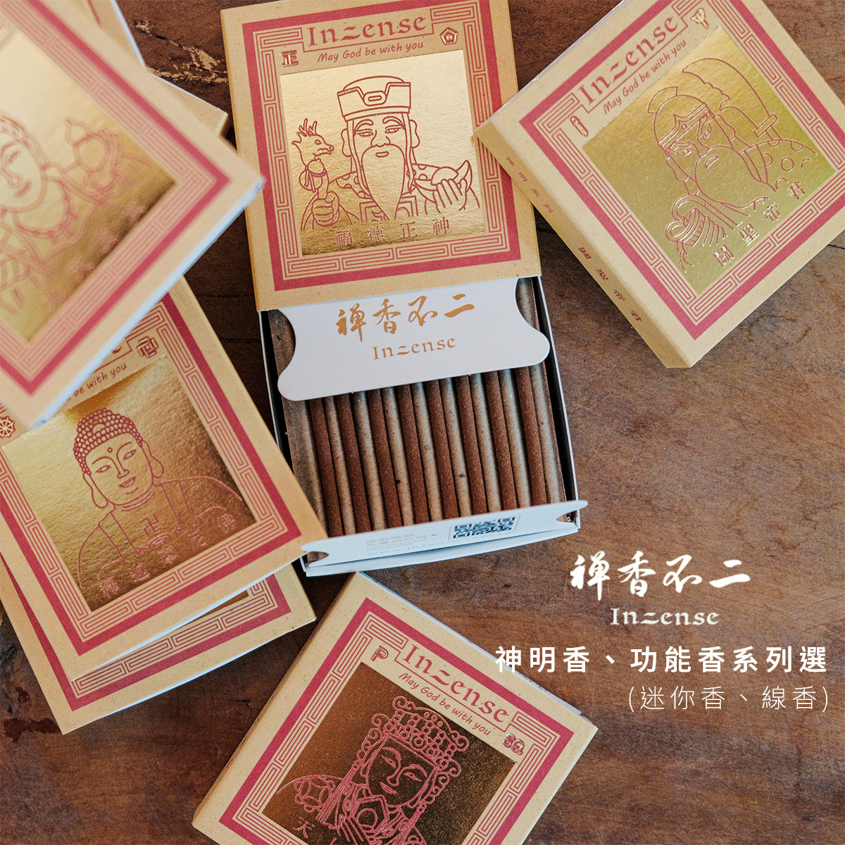 藥師佛, 福德正神, 財神爺, 月老星君, 觀世音菩薩, 釋迦摩尼佛, 關聖帝君, 天上聖母, 九天玄女, 文昌帝君, 靈感香, 平安香, 放鬆香, 除障香