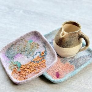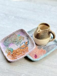 濕氈,是以羊毛為主要元素的纖維軟雕塑創作。形狀可塑性高,且同時可以玩出不同顏色混合的樂趣,使得創作主題可以無限延伸。