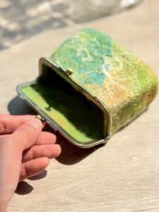 課程中現場將製作完成一個口金小包,並提供材料回家練習製作另一個。