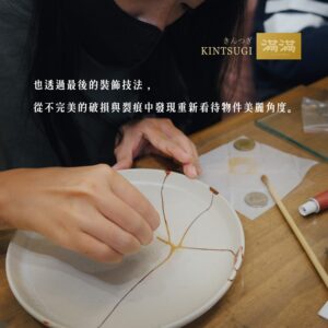 最後也透過「蒔繪」、「上金」的方式,從不完美的破損與裂痕中找到重新看待物件美麗的角度。