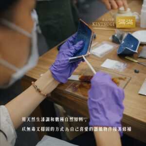也由於天然生漆是有機的,狀態會隨著氣候環境變化,故我們的課程也強調讓學員學會自己觀察、判斷漆的狀態來扎實地完成每一個修復步驟。