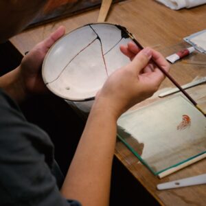 「金継ぎ」,以本漆(天然生漆)與純金(銀)為主要媒材來修復毀損器具的傳統工藝技術,