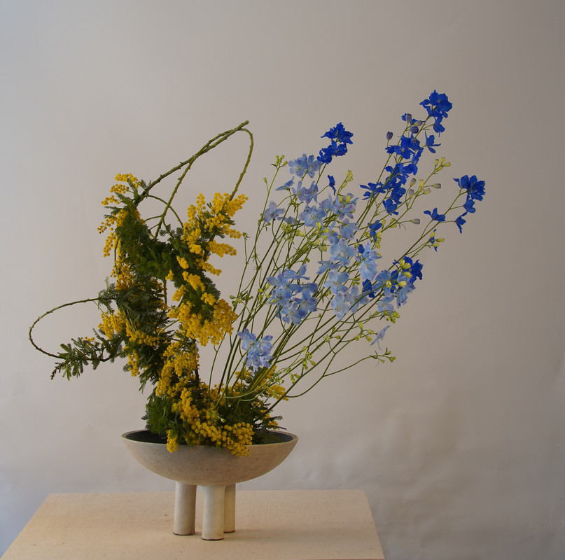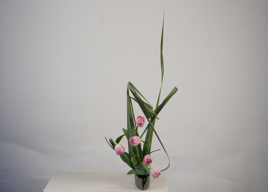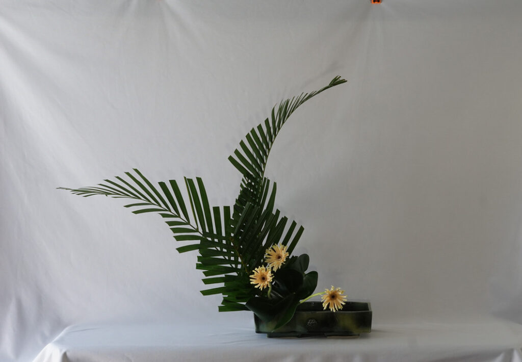 最長的主枝向上延伸。植物具有自然向上生長的傾向。這個花型表達向上生長的能量。它體現了一種堅固而穩健的插花風格。
