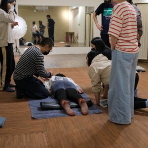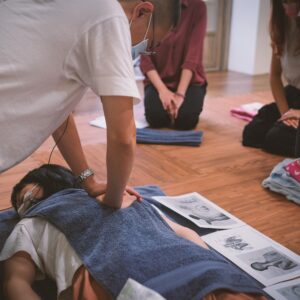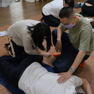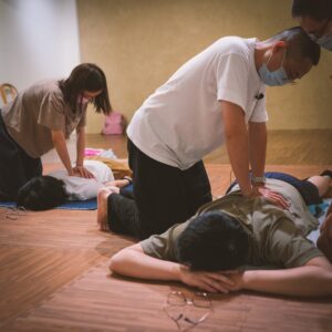 此課程依據經絡運行的概念,由老師手把手地教授「腰、背、臀」、「大小腿」、「肩、頸」等三大部位的按摩放鬆技巧,並透過現場與同學的互相實作練習,用身體實際記住所學,如此課後也能在家幫家人施作。