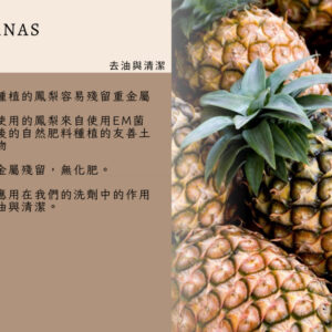 成分:野生第倫桃、野生潺槁木薑子、野生無患子、山泉水、野生箭葉橙、鳳梨、野生印度油⽢、紅球薑、EM菌