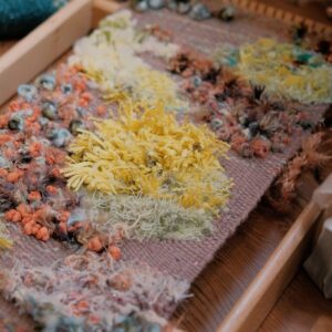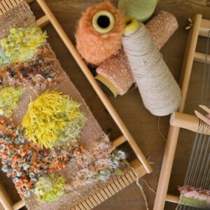 自由梭織,最能在短時間內體驗到多種纖維交織的樂趣,在穿梭中玩出編織的火花
